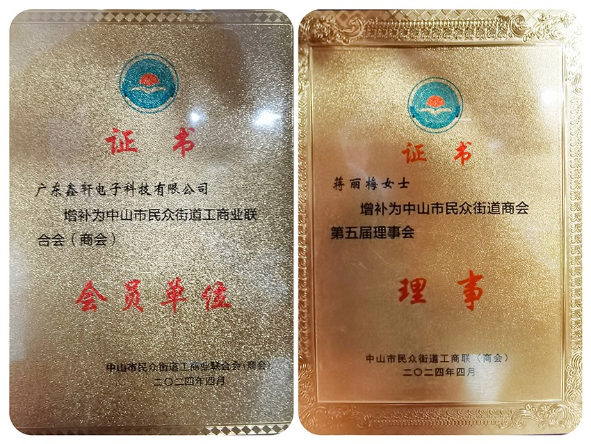 鑫轩科技增补为中山市民众街道工商联会员单位董事长蒋丽梅增补为理事